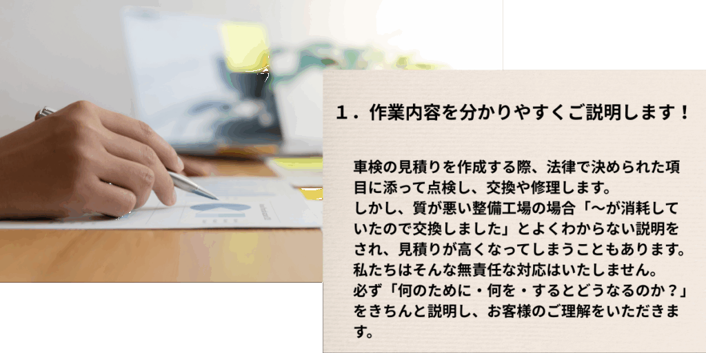 ご来店いただき、整備内容の打ち合わせをさせていただきます。